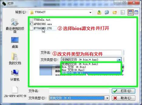 微星提供的bios文件是以三位数字为后缀的(如图),所以要把文件类型改为所有文件,这不影响我们刷新bios[/caption] 点击自动,等待一会,直到出现“所有操作已完成,芯片已经编程并校验成功!”提示框就能把编程器硬件从USB端口拔出来,上机测试是否能进入bios。